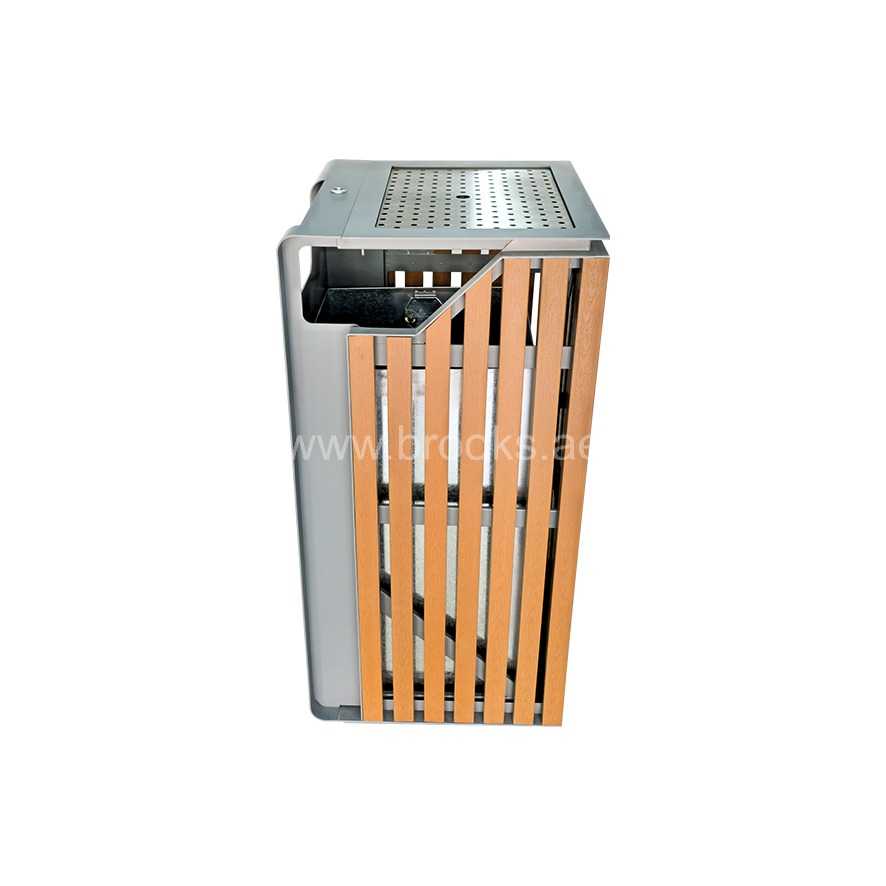 Designed to enhance cleanliness and style in modern public spaces, the Brooks Telvy Ashtray Bin offers a durable, high-capacity waste solution with a sleek, contemporary finish. With a 118-litre capacity, it is ideal for malls, office complexes, hotel entrances, outdoor seating areas, and smoking zones. The Telvy bin is constructed from a sturdy combination of galvanized steel (GS) and wood-plastic composite (WPC), offering excellent resistance to rust, weather, and daily wear. Its top-mounted stainless steel ashtray provides a neat and efficient space for cigarette disposal, while the large waste opening supports easy, contactless use.