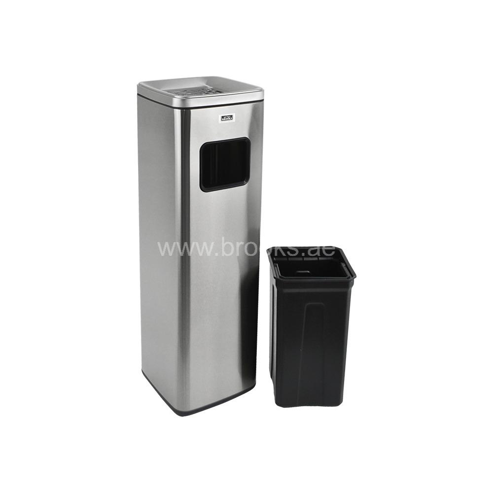 - Brooks Yuka Ashtray Bin Square Silver 16Ltr