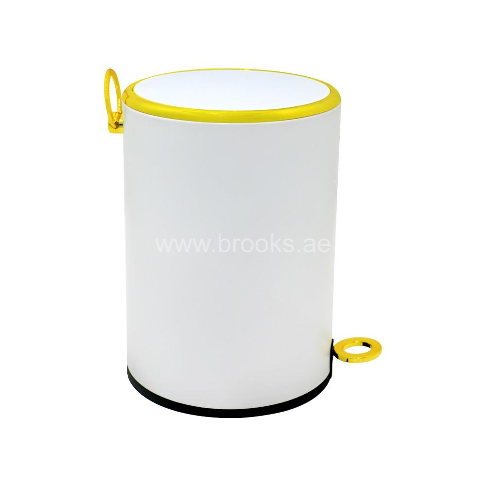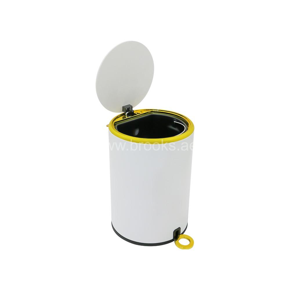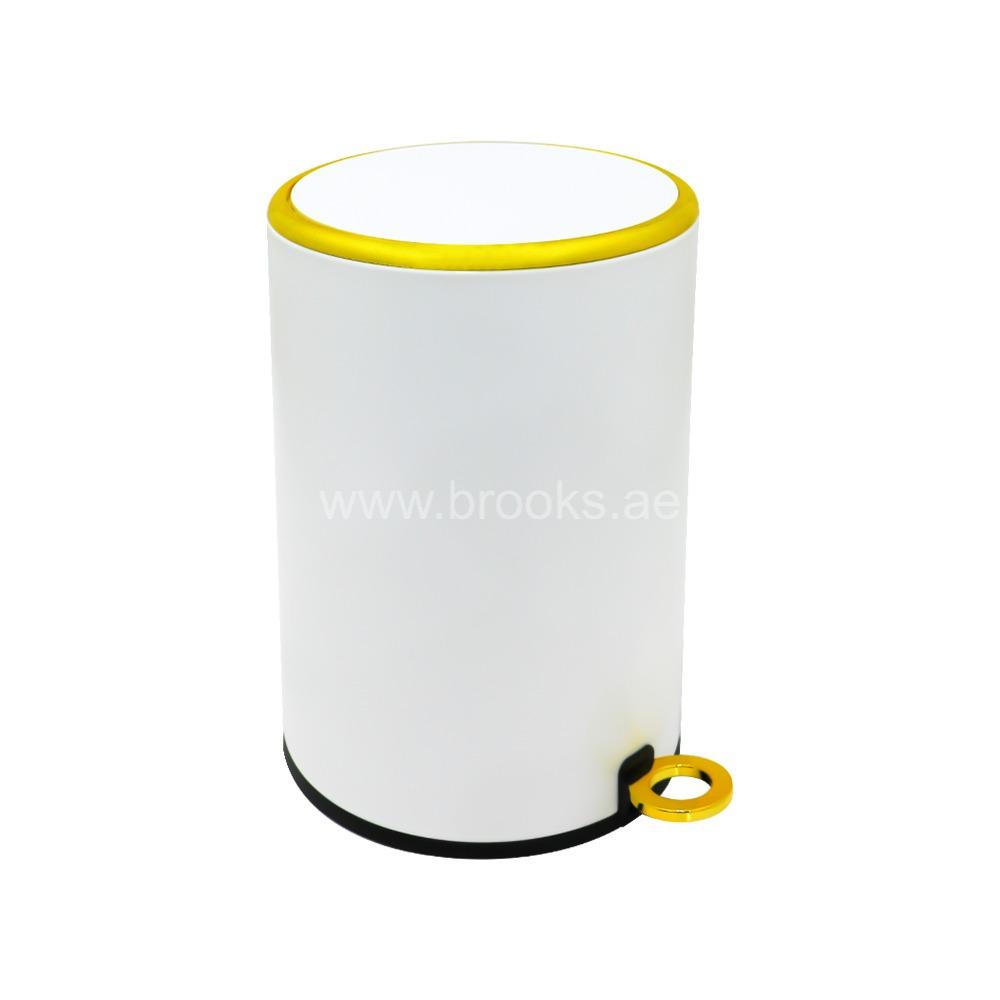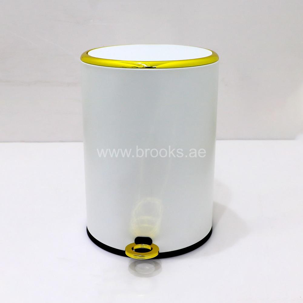 • Brooks Fable Metal Pedal Bin White+Golden 5Ltr