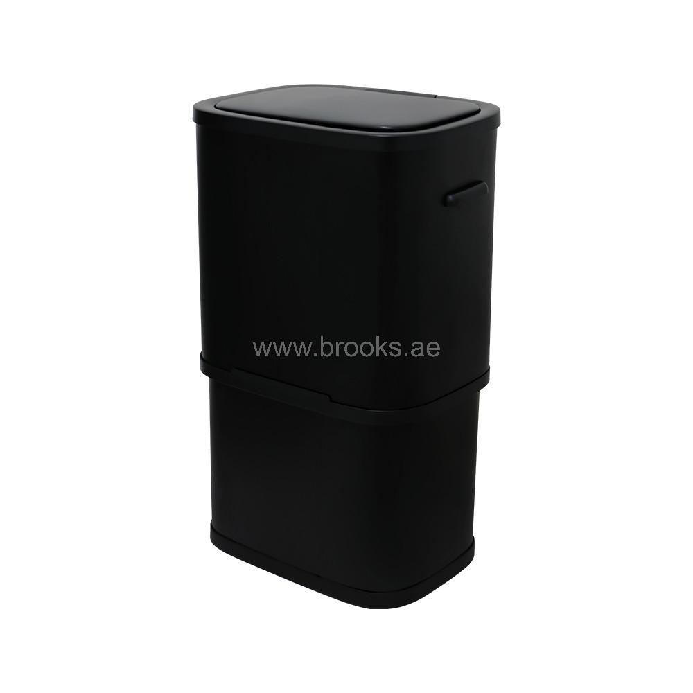 - Brooks Double Recycle Garbage Push Bin Black 60Ltr