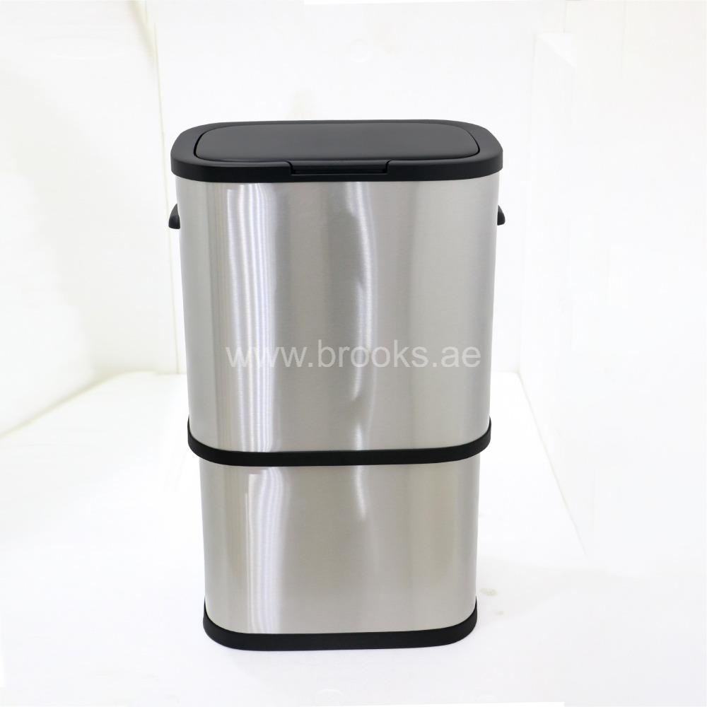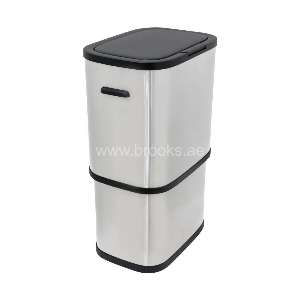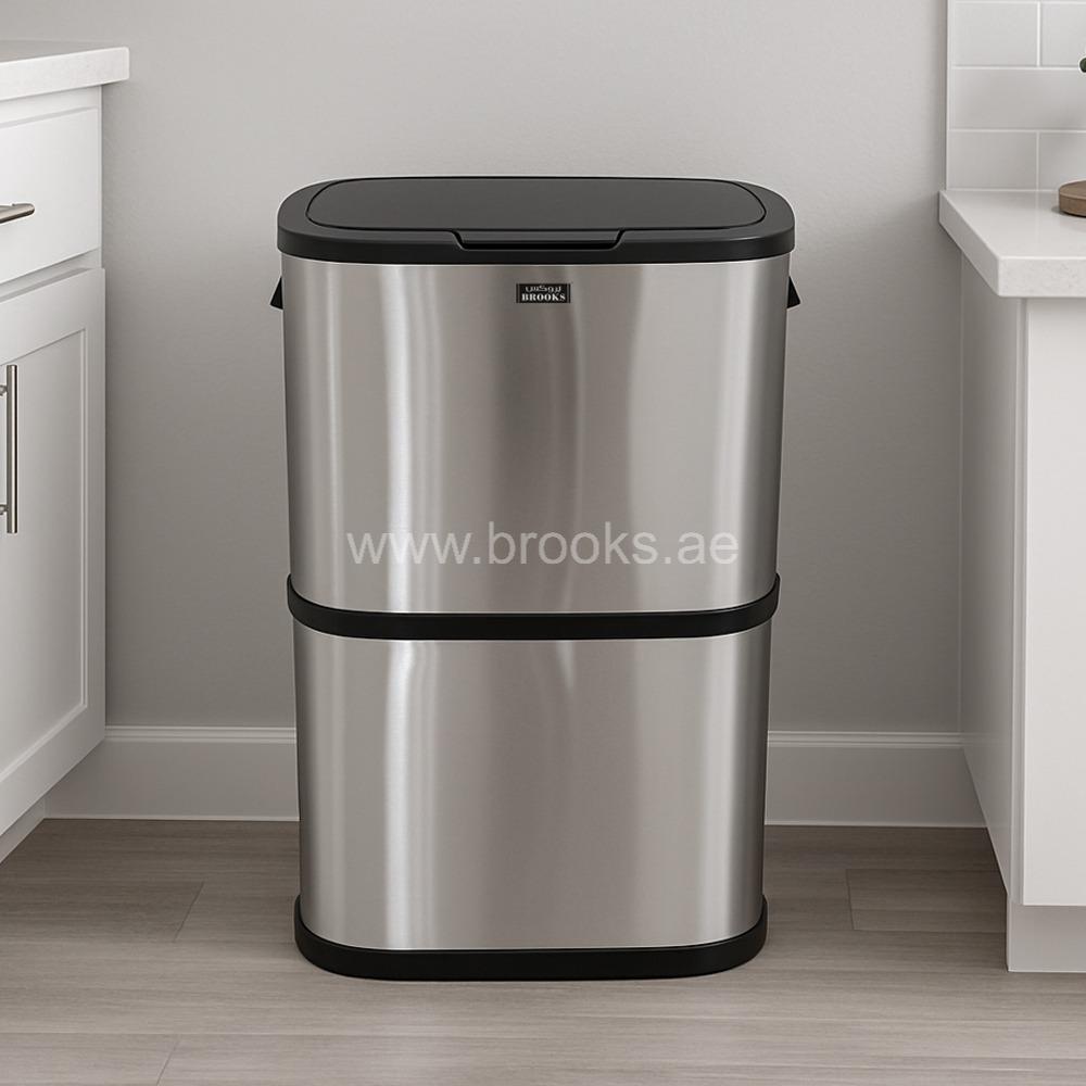 The Brooks Double Recycle Garbage Sensor/Push Bin is a highly functional and aesthetically pleasing waste management solution designed for modern indoor spaces. With a total capacity of 60 liters, it is intelligently divided into two separate 30-liter compartments, making it easy to sort and store both general waste and recyclables. This bin features a sleek silver stainless steel body that is not only durable and non-corrosive but also adds a sophisticated look to any kitchen or office. While the name suggests a sensor or push-lid, some models feature a hygienic foot pedal mechanism that opens both lids at once, offering a hands-free experience. For easy maintenance, the bin is equipped with two removable inner buckets, ensuring that emptying and cleaning are simple and hassle-free. The tight-fitting lids are designed to trap odors and keep the contents securely out of sight, making this bin a practical and clean addition to any home or workplace.