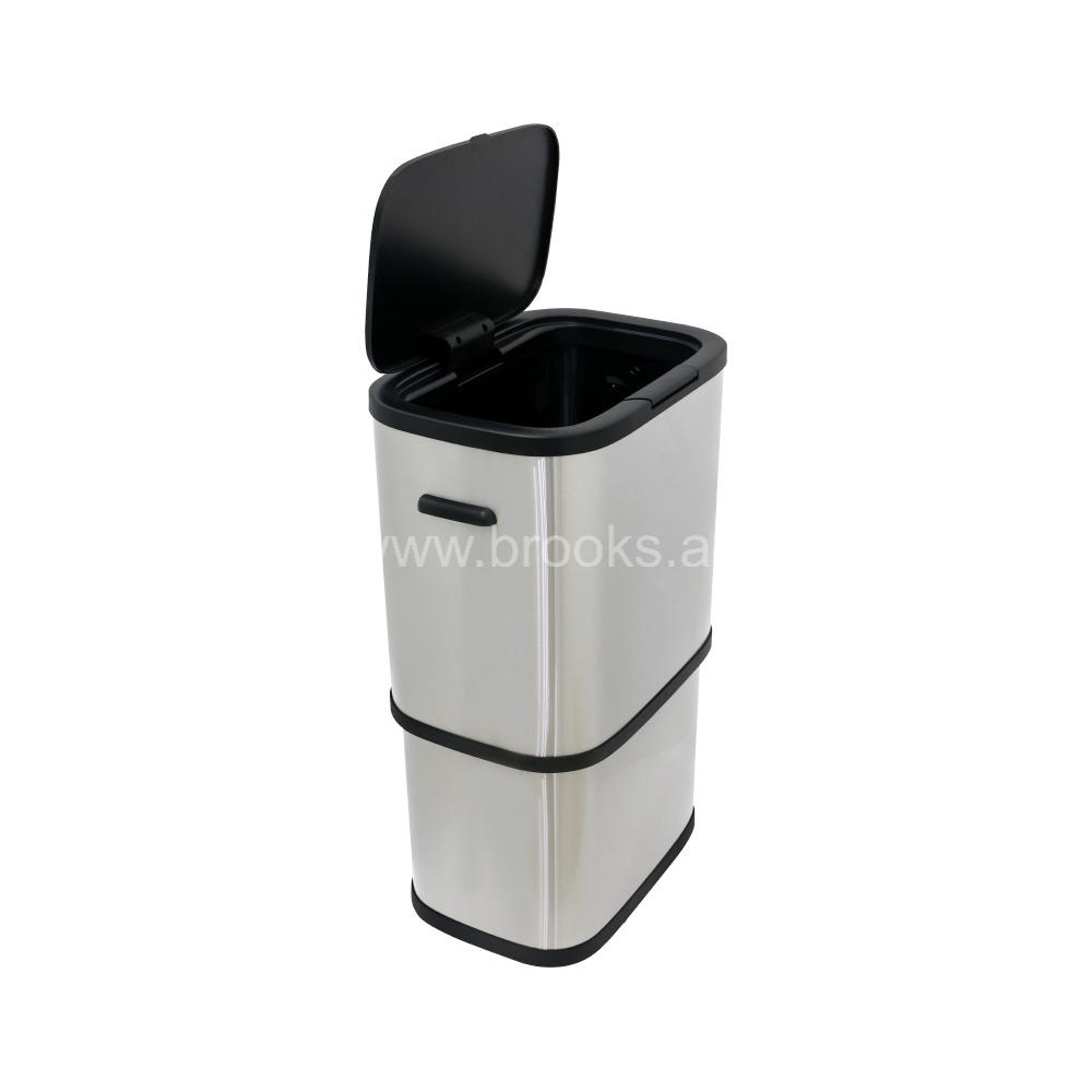 - Brooks Double Recycle Garbage Sensor/Push Bin Silver 60Ltr