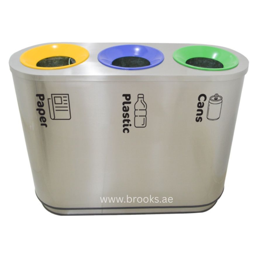 The Brooks Klaxon 3 Stream FPR Recycle Bin 120Ltr is a premium-grade waste separation system designed for spaces where clarity, cleanliness, and capacity are essential. Featuring three distinct compartments, this unit supports multi-stream recycling in a single, compact footprint—ideal for corporate offices, airports, malls, schools, and green buildings. With a total capacity of 120 litres (40L per stream), it’s engineered for medium to high foot-traffic environments demanding effective waste control. Constructed from Fire-Resistant Polyresin (FPR), the Klaxon bin ensures enhanced fire safety, structural integrity, and long-term performance in indoor and semi-outdoor conditions. The FPR material is known for its anti-scratch, easy-clean surface, making it well-suited for public use where hygiene and durability are priorities. Its matte finish offers a refined aesthetic that complements modern architecture and interior design.