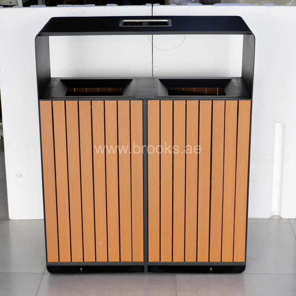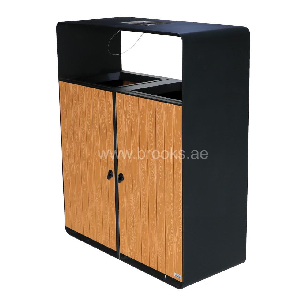 The Brooks NIKOLO SS+WPC 2 Stream Recycle Bin with Ashtray Lid (180L) is designed for environments that demand both style and functionality. With its dual-stream sorting capability, it promotes responsible waste management by making it effortless to separate recyclables and general waste. Perfect for malls, offices, hotels, hospitals, airports, and outdoor public spaces, this bin adds a polished and professional look to any setting. Crafted from a combination of high-grade stainless steel (SS) and wood-plastic composite (WPC), this recycle bin offers exceptional durability, corrosion resistance, and weather protection. The elegant WPC finish enhances its aesthetic appeal, while the stainless steel body provides strength and stability. This combination makes the bin suitable for both indoor and outdoor use, delivering long-lasting performance even in high-traffic areas.