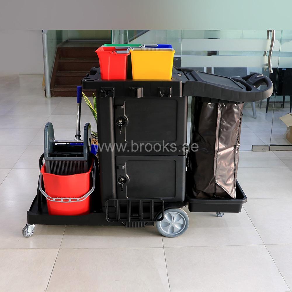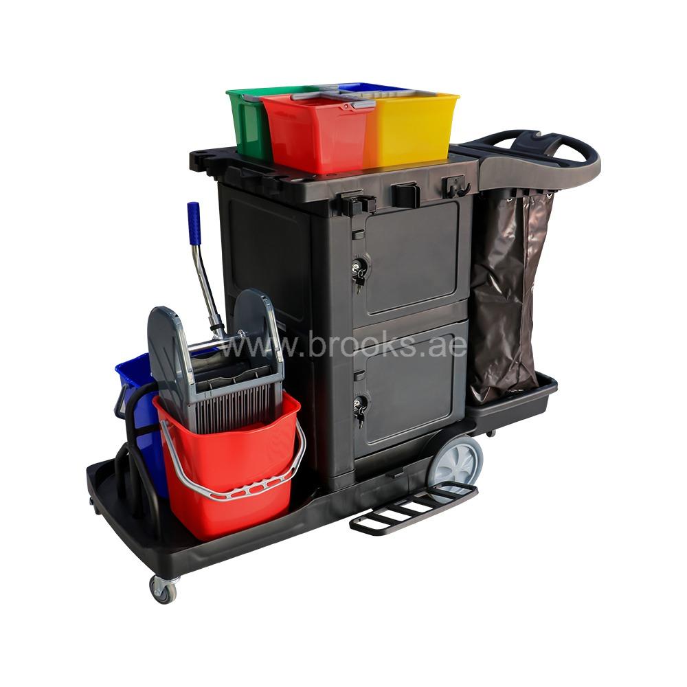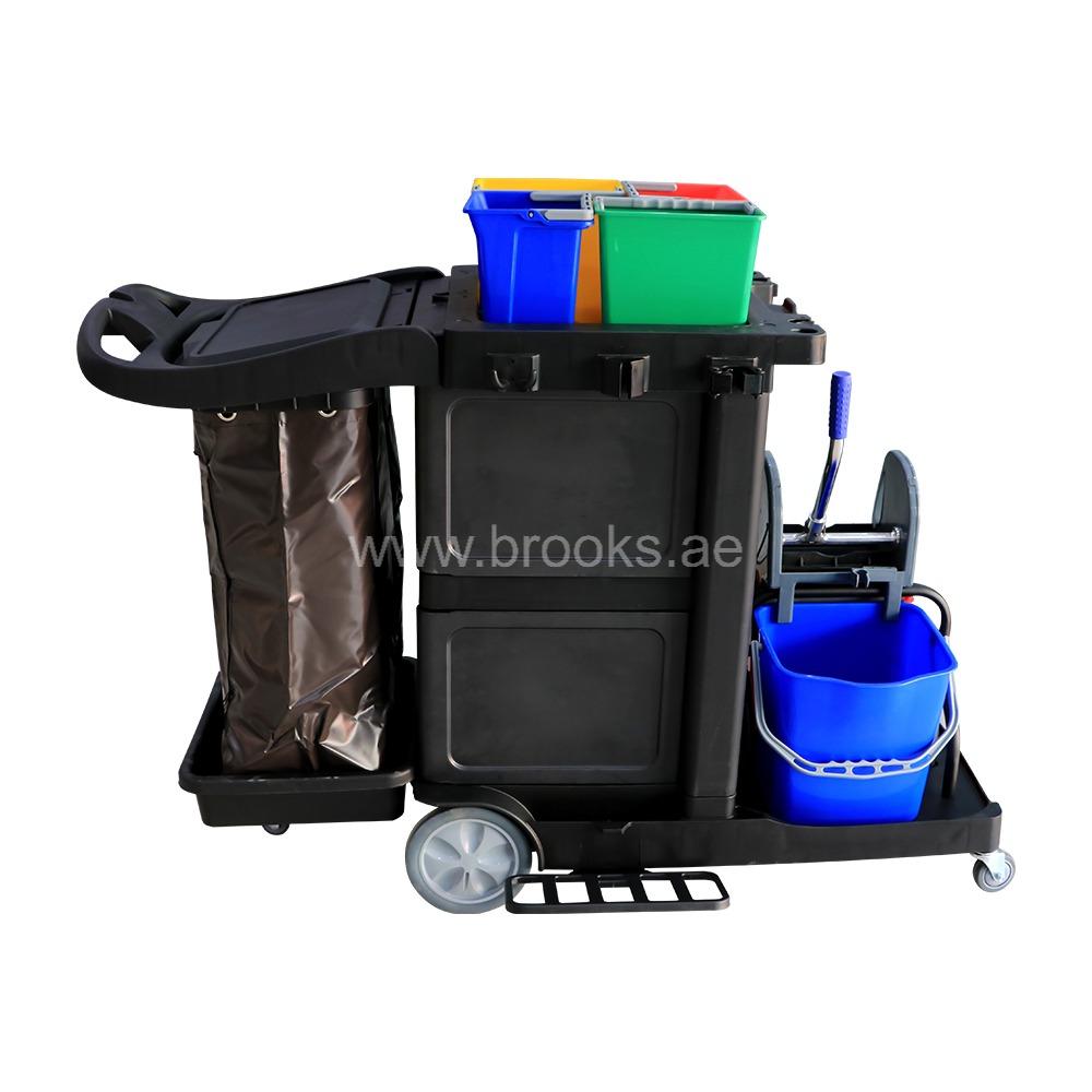 - Brooks Valxio Janitor Cart Mop Wringer 20Ltr+Door+Cart Bag+4Buckets 6Ltr