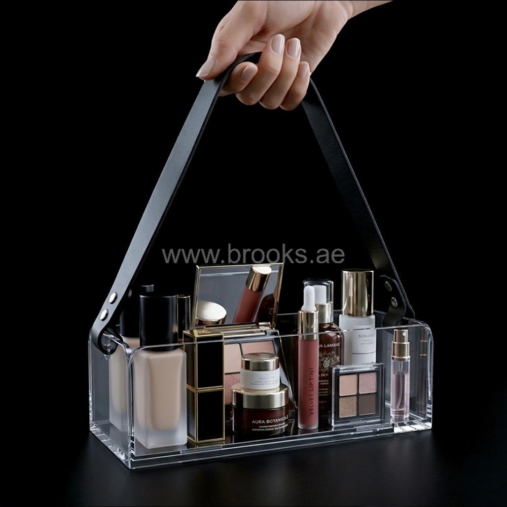 The Veelex Clear Acrylic Organizer Tray with Strap represents a modern blend of functionality and style, designed for individuals who appreciate both organization and aesthetic clarity. Crafted from transparent acrylic, this tray offers a clean, minimalist look that seamlessly fits into contemporary interiors. The addition of a strap or handle elevates its practicality, making it easy to carry and reposition across different spaces—whether on a vanity, desk, or coffee table. Its design emphasizes visibility, allowing users to quickly locate and access items without unnecessary clutter or obstruction.