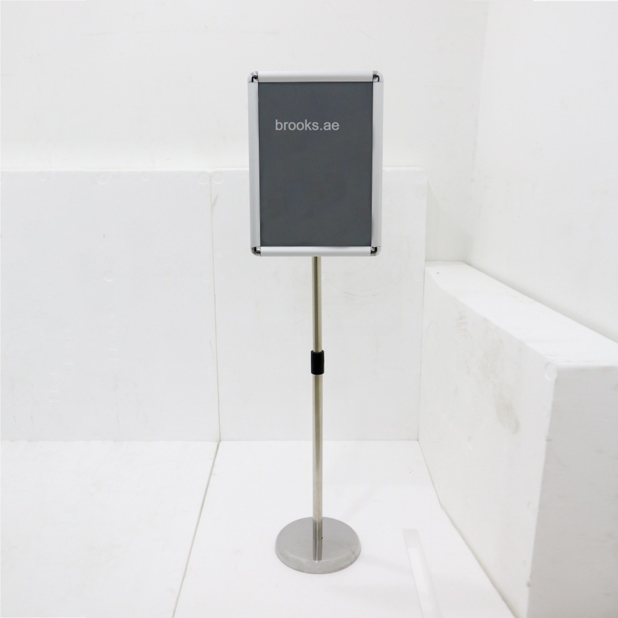 The Brooks Stand Double-Sided A3 Vertical is designed to enhance visibility and accessibility in offices, retail stores, exhibitions, and events. With its sturdy construction and sleek design, this stand provides a highly professional display for posters, menus, promotions, and information sheets. Maximizes exposure by allowing content to be visible from both directions.  Perfect for presenting detailed information in an upright format. Whether you’re displaying a restaurant menu, promotional offers, or important announcements, the Brooks Stand provides a crystal-clear view with a premium feel. Its minimalistic frame and stable base ensure that your content remains the center of attention.